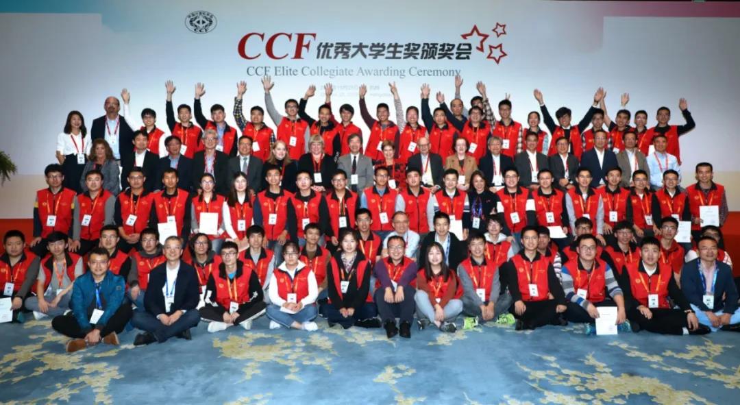 CCF优秀大学生奖颁奖会 是由具有候选人资格的高校推荐,经评审选出的优秀大学生100名。获奖学生将得到CCF全额资助,参加当年度中国计算机大会,CCF将向他们颁发“CCF优秀大学生奖”证书,并举行优秀大学生颁奖礼,将由大会特邀嘉宾亲自颁奖给每一位学生,并与他们合影留念,这对每个学生来说都是一段难忘的经历和美好的会议。