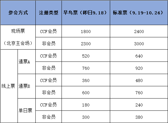 2)通票A包含会议纪念品,通票B不包含会议纪念品;其他参会权限一致;